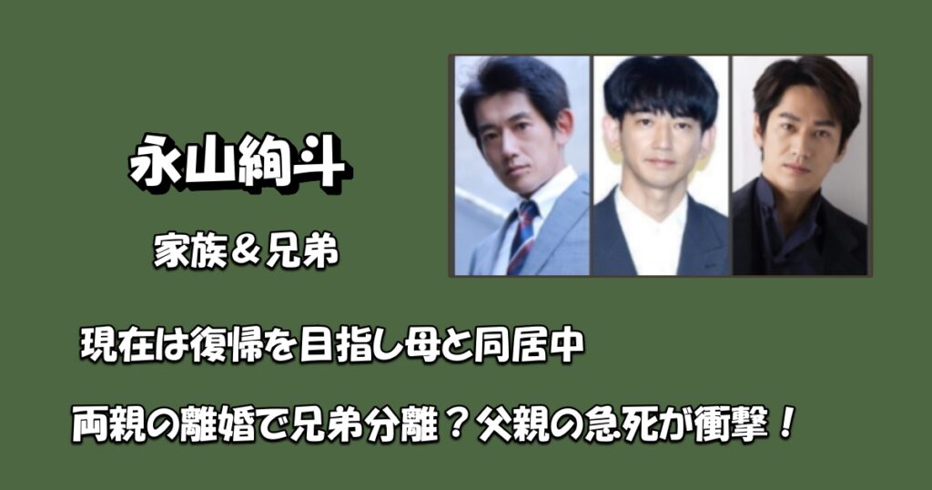 永山絢斗【家族】両親の離婚で兄弟分離?父親の急死が衝撃!現在は復帰を目指し母と同居